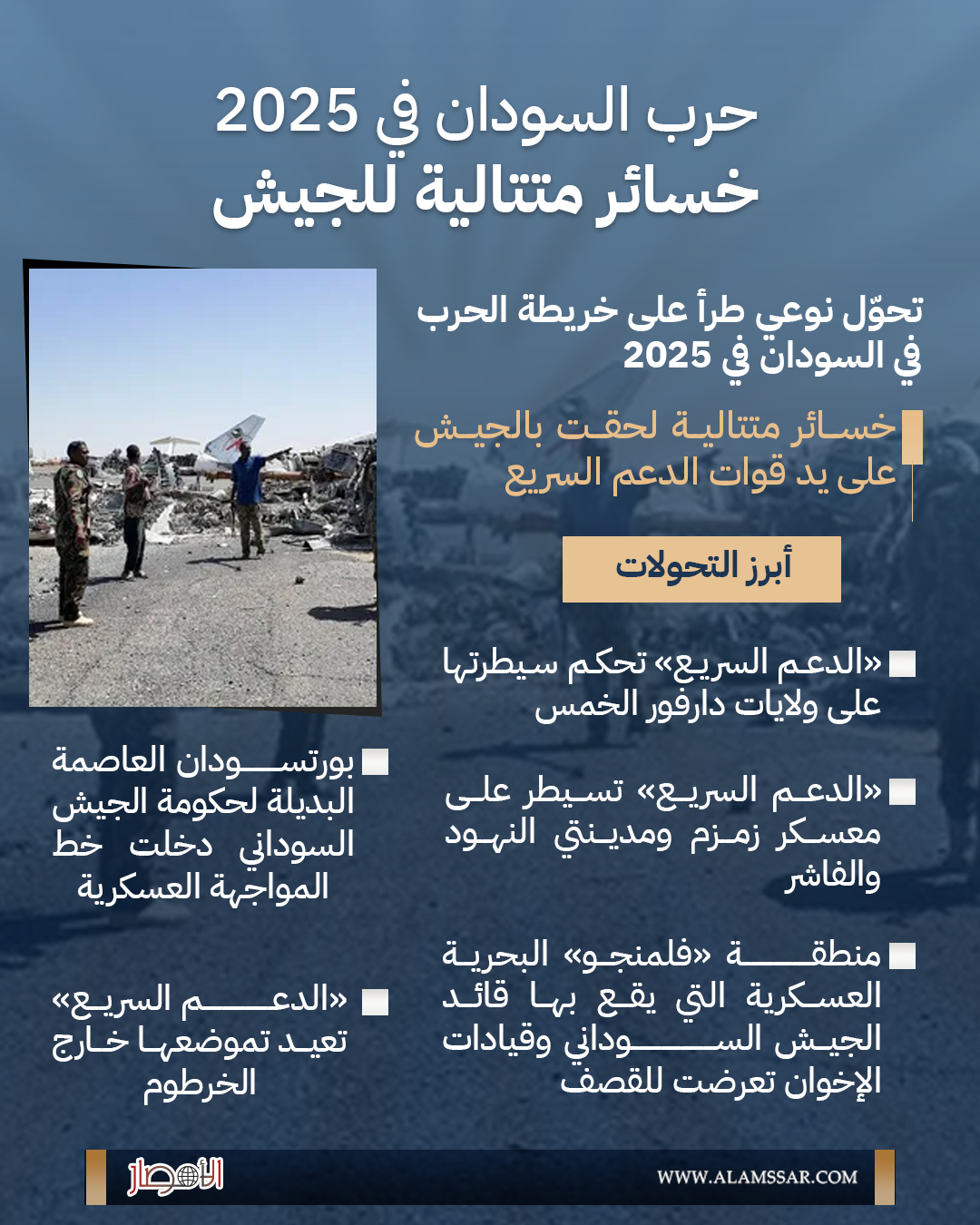 بالإنفوجراف| حرب السودان في 2025.. خسائر متتالية للجيش