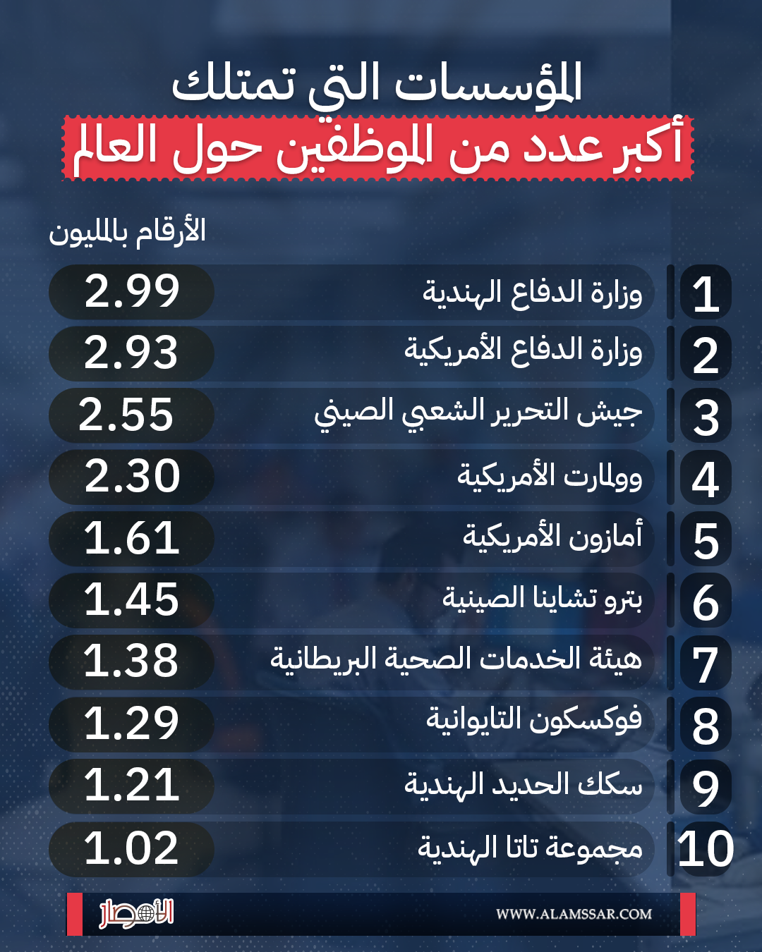 إنفوجراف| المؤسسات التي تمتلك أكبر عدد من الموظفين حول العالم