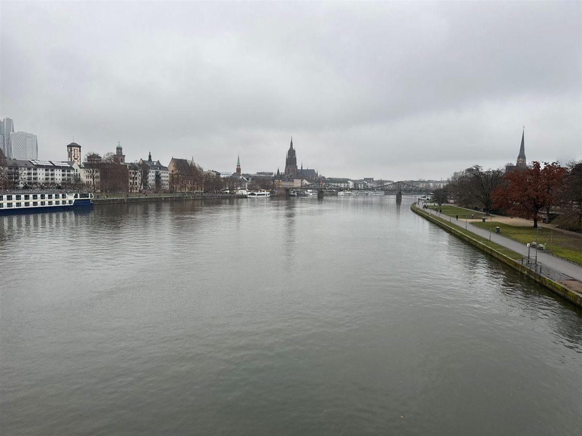 يخترق نهر الماين مدينة فرانكفورت من المنتصف، ويُعد أحد أهم معالمها الطبيعية والجغرافية.