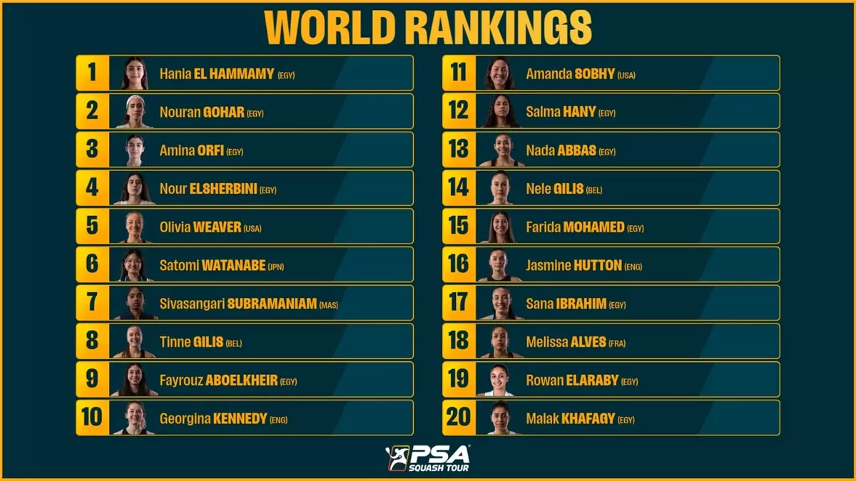 أعلنت رابطة اللاعبين المحترفين للاسكواش تصنيف الرجال والسيدات الجديد، اليوم الإثنين، عن موسم 2025-2026، وواصل المصري مصطفى عسل هيمنته على قمة ترتيب الرجال، كما واصلت البطلة المصرية هانيا الحمامي لاعبة وادي دجلة تربعها على قمة تصنيف السيدات بعد انتهاء منافسات بطولة هونج كونج للاسكواش.