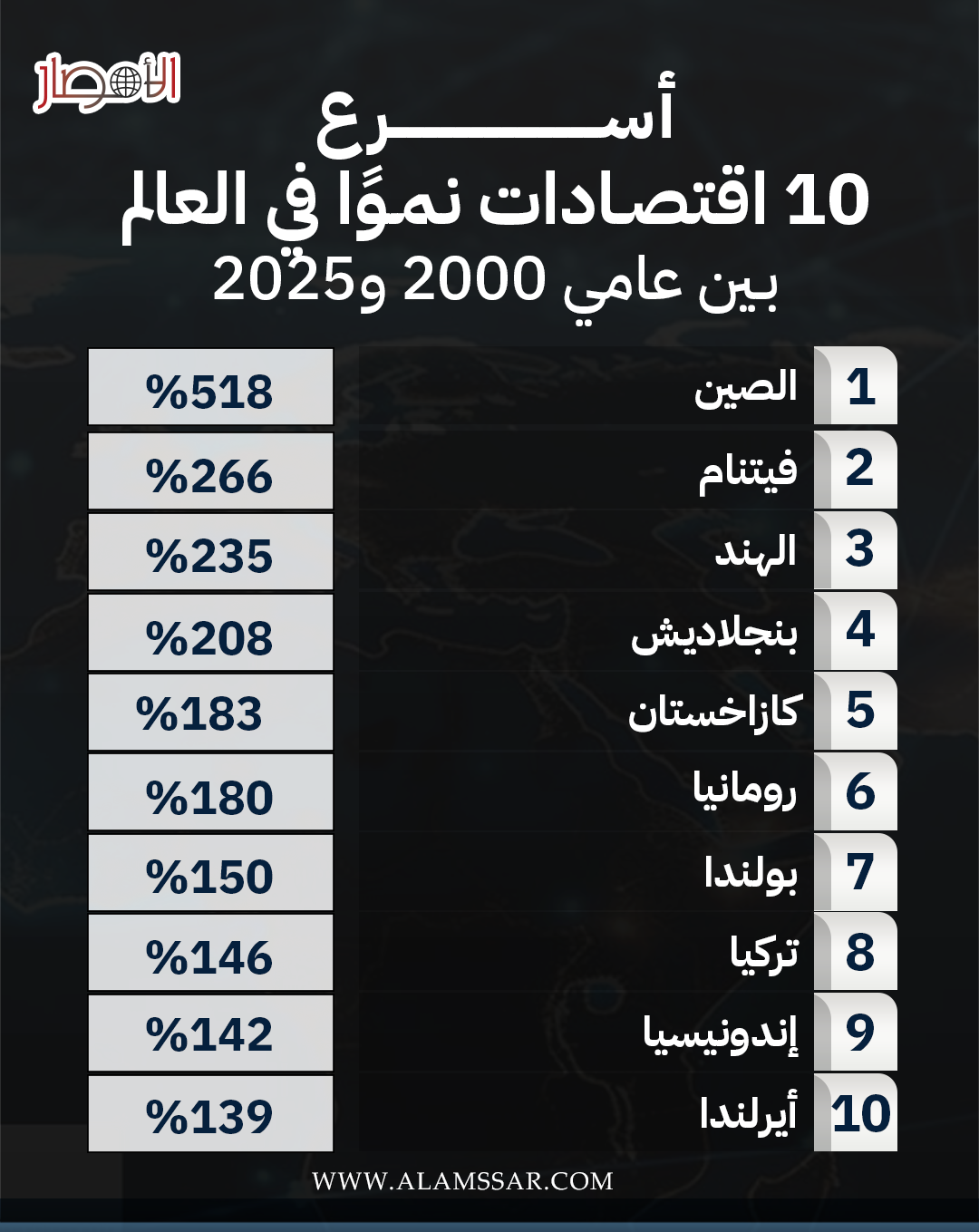 إنفوجراف| أسرع 10 اقتصادات نموًا في العالم