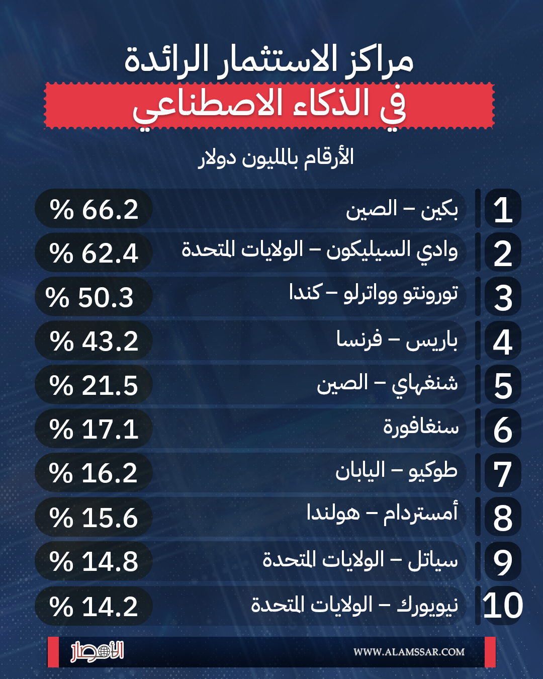 انفوجراف.. مراكز الاستثمار الرائدة في الذكاء الاصطناعي