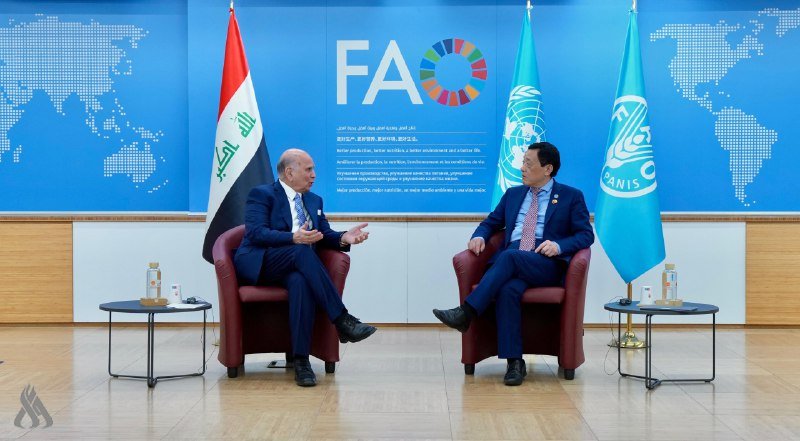 وأكد وزير الخارجية العراقي، خلال اللقاء، أن الحكومة العراقية تولي أهمية كبيرة لتعزيز شراكتها مع منظمة فاو، انطلاقًا من دورها المحوري في دعم الدول النامية، ومساندة الجهود الوطنية الرامية إلى تحقيق الاكتفاء الذاتي الغذائي، وتحسين سبل عيش المزارعين، وتطوير القطاع الزراعي بما ينسجم مع أهداف التنمية المستدامة.