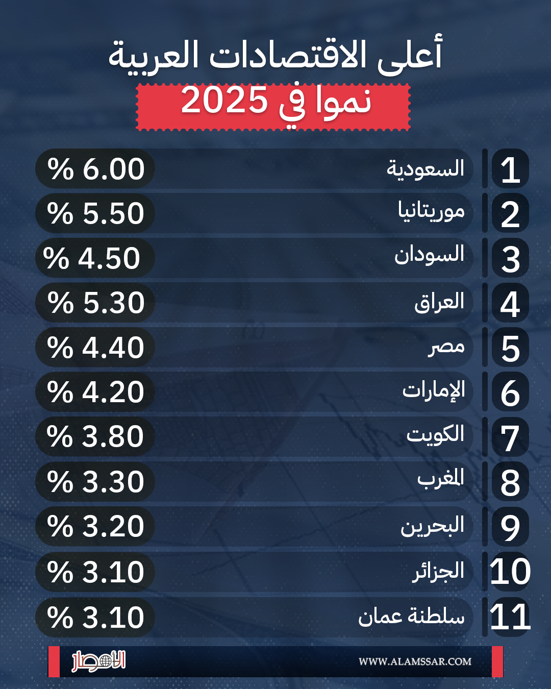 إنفوجراف| أعلى الاقتصادات العربية نموا في 2025