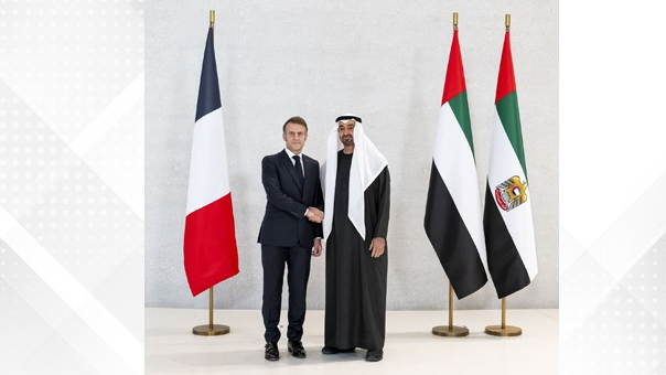 رئيس الإمارات يستقبل نظيره الفرنسي ويبحثان العلاقات بين البلدين