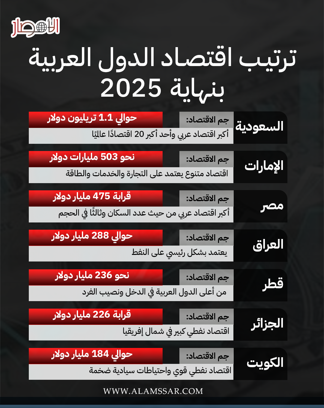 إنفوجراف.. ترتيب اقتصاد الدول العربية بنهاية 2025