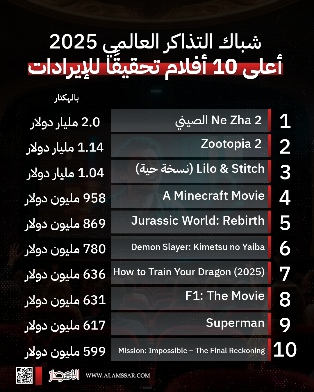 انفوجراف| شباك التذاكر العالمي 2025.. أعلى 10 أفلام تحقيقًا للإيرادات