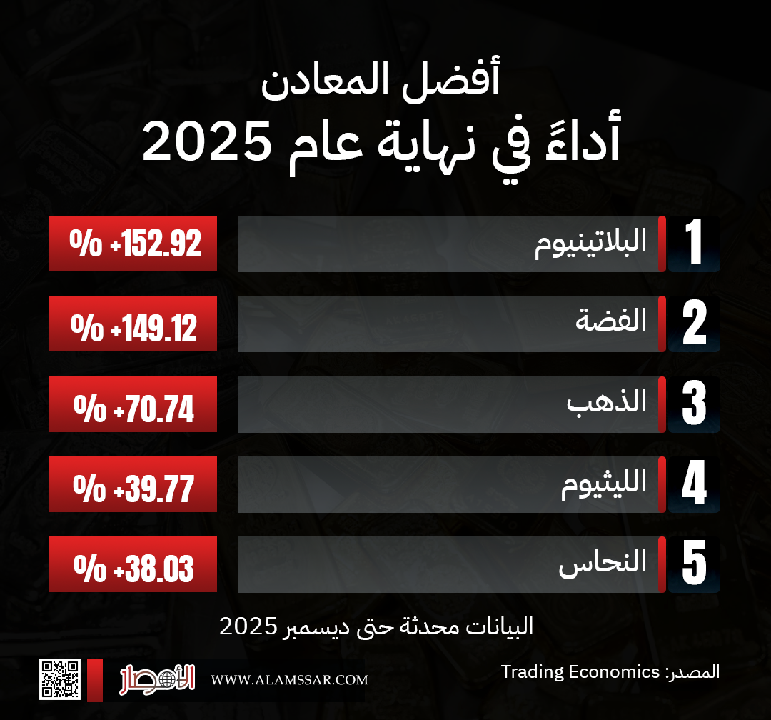 انفوجراف.. أفضل المعادن أداءً في نهاية عام 2025