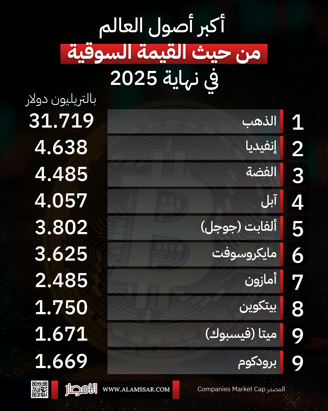 انفوجراف.. أكبر أصول العالم من حيث القيمة السوقية في نهاية 2025