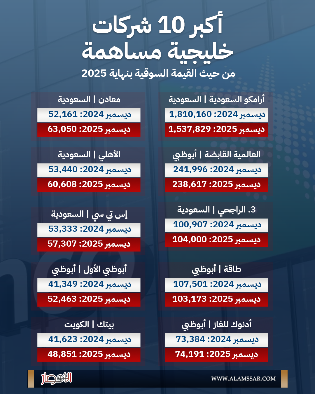 بالإنفوجراف.. أكبر 10 شركات خليجية مساهمة