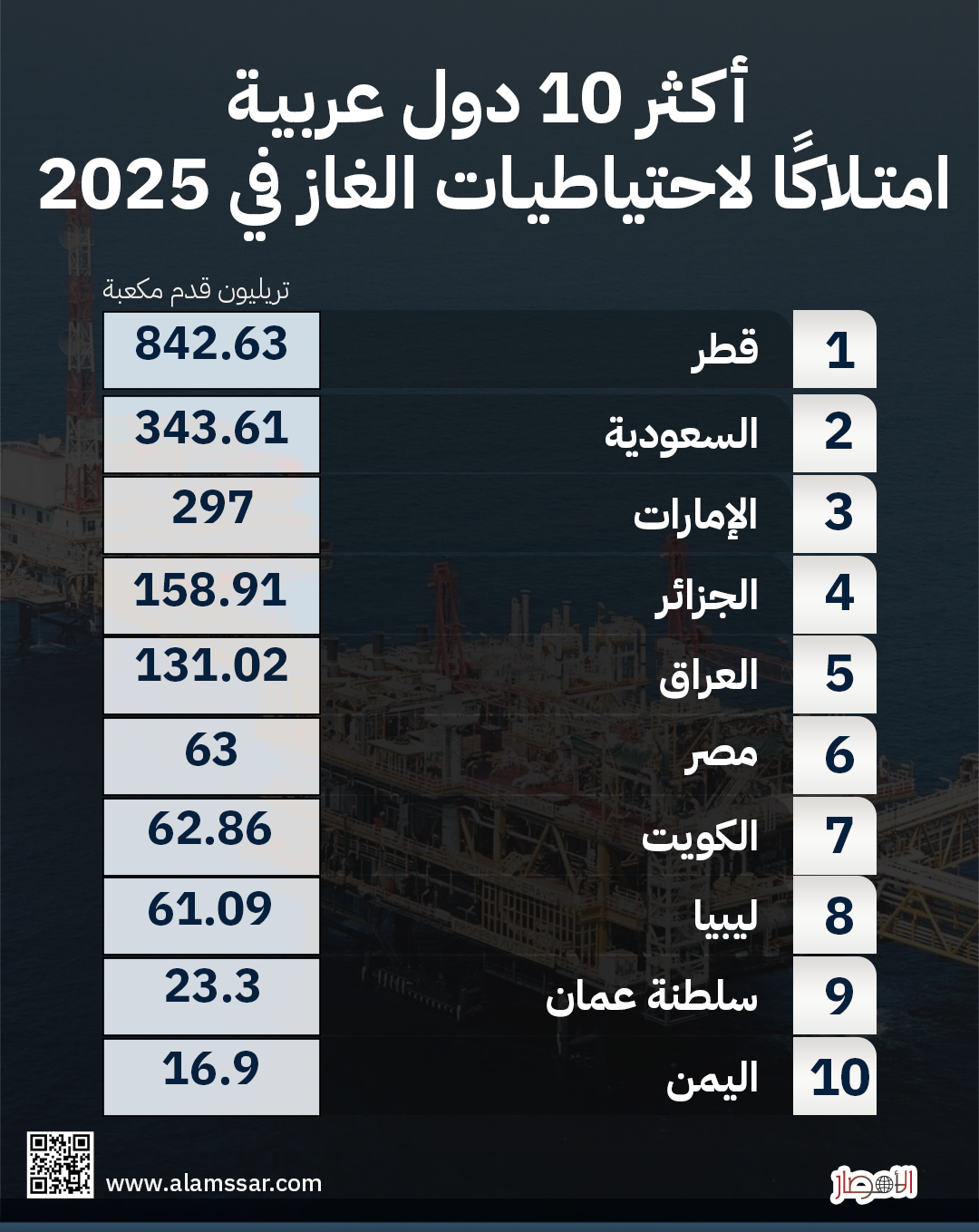 إنفوجراف| أكثر 10 دول عربية امتلاكًا لاحتياطيات الغاز في 2025