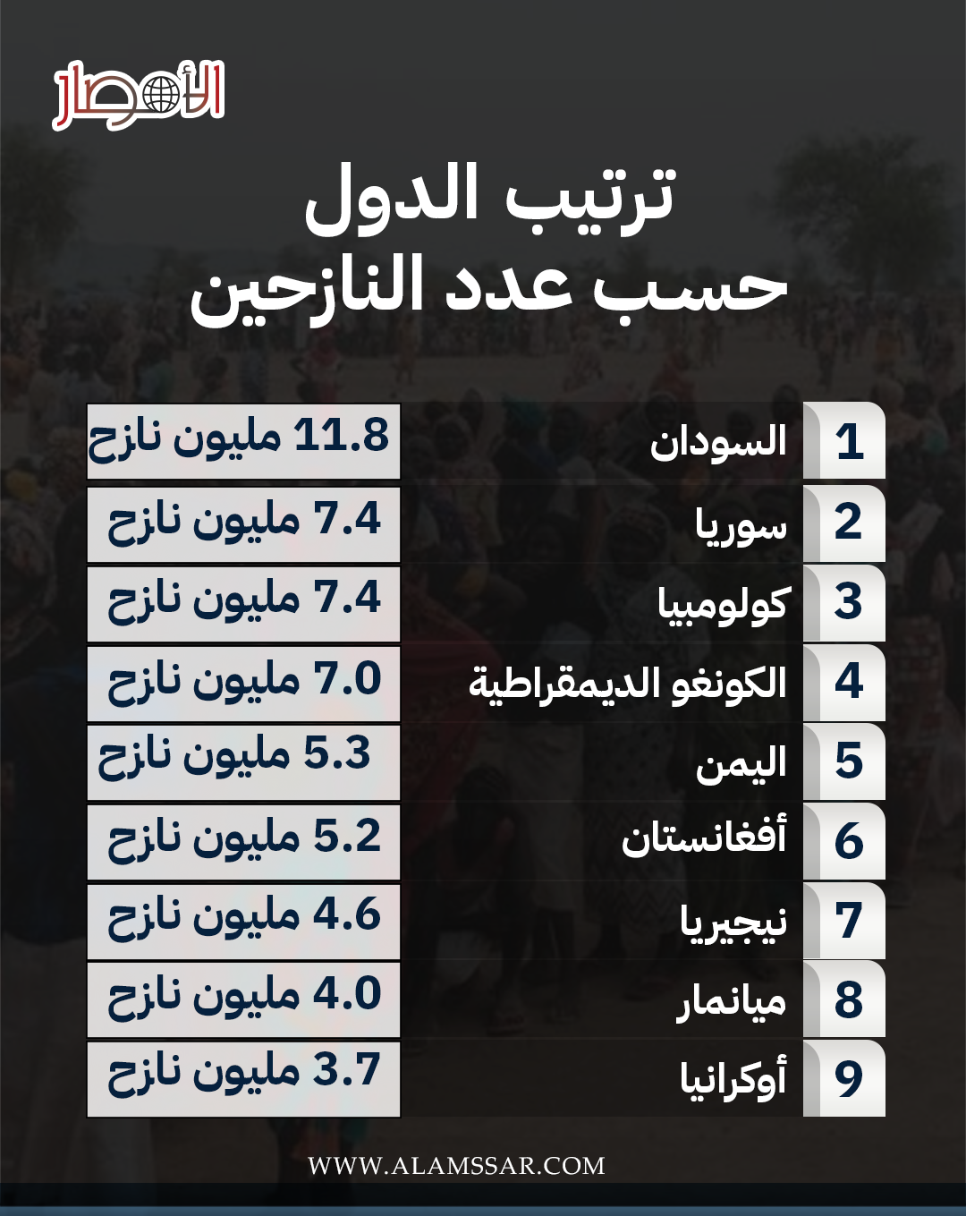 بالإنفوجراف.. ترتيب الدول حسب عدد النازحين