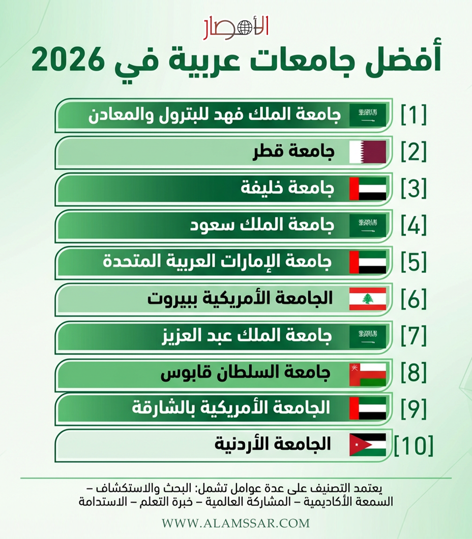 إنفوجراف.. أفضل 10 جامعات عربية في 2026