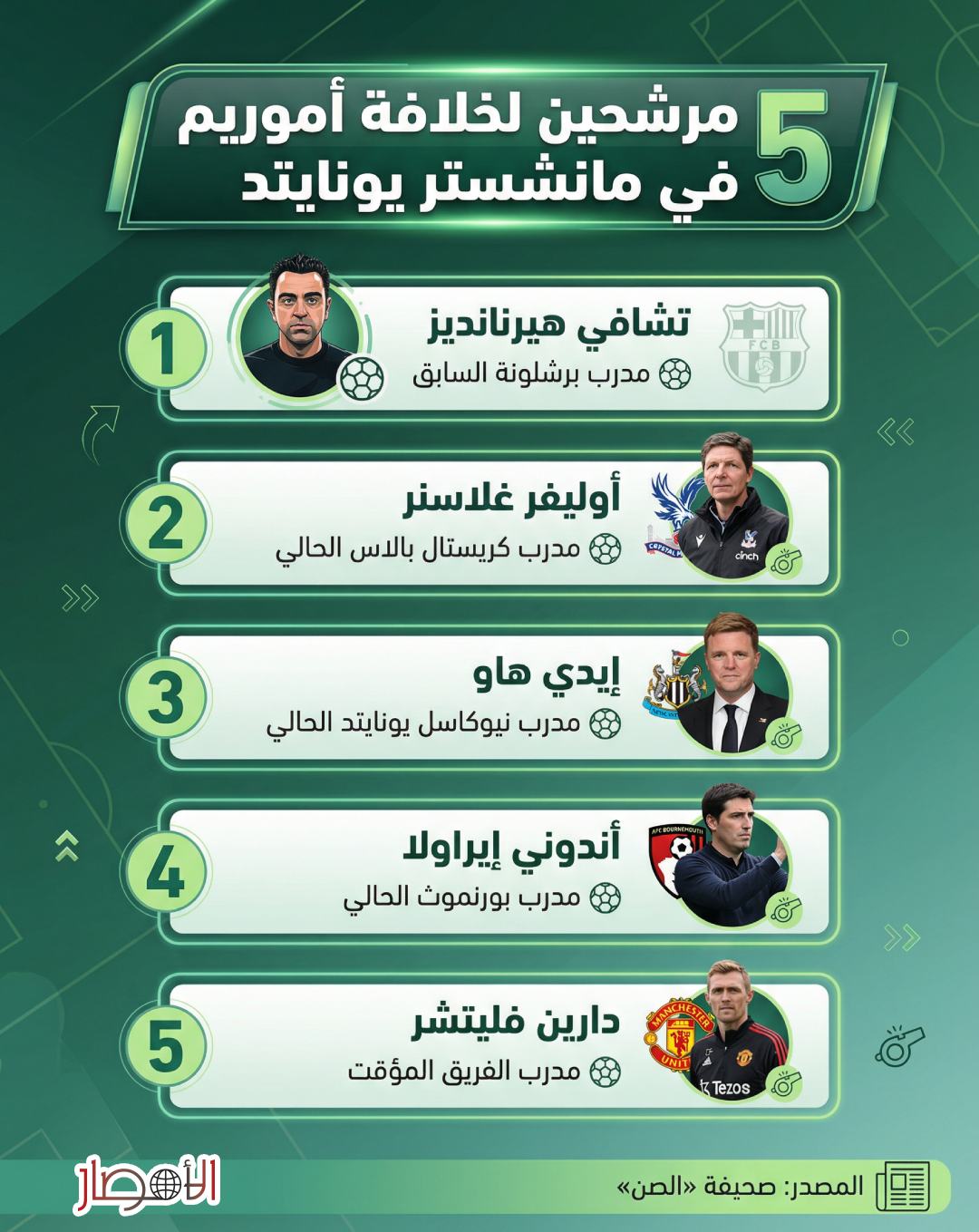 وتسعى إدارة مانشستر يونايتد الإنجليزية من خلال هذه الاختيارات إلى حسم ملف المدرب الجديد سريعًا، في محاولة لإنقاذ الموسم الحالي، وإعادة الفريق إلى مساره الطبيعي كأحد كبار أندية كرة القدم في إنجلترا وأوروبا، وسط ترقب جماهيري واسع للقرار النهائي المرتقب.