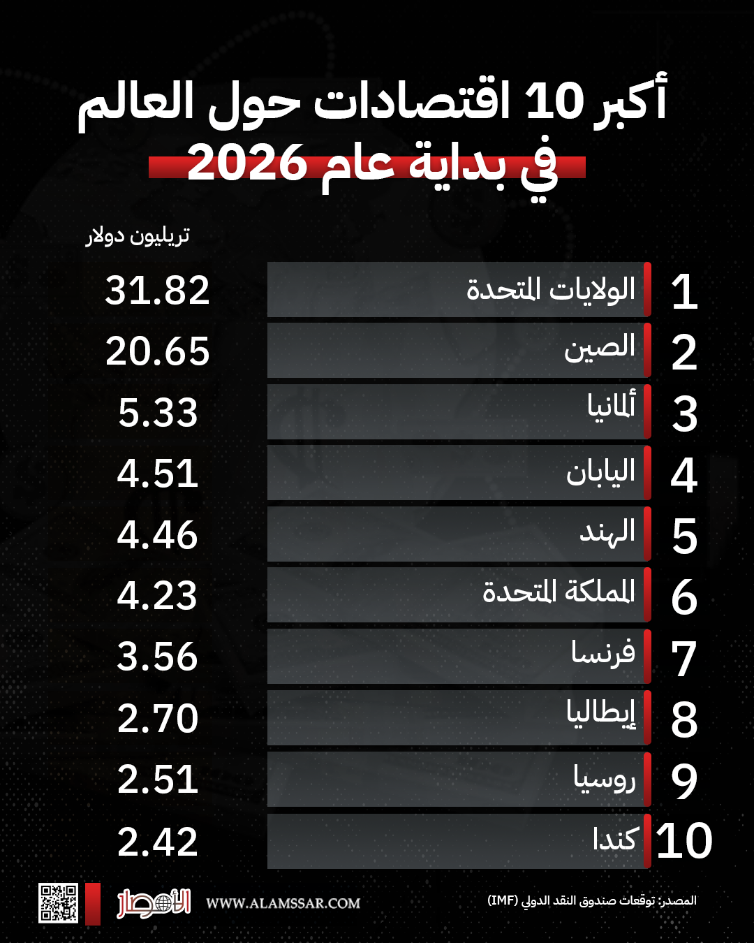انفوجراف.. أكبر 10 اقتصادات حول العالم في بداية عام 2026