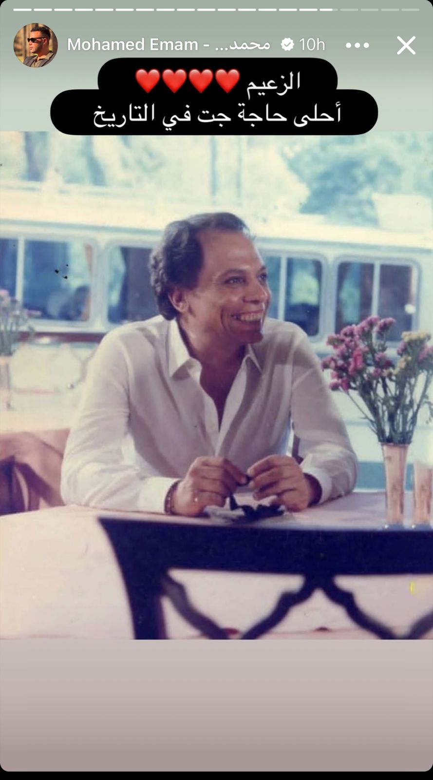 وكتب محمد إمام عبر ستوري حسابه الشخصي: “الزعيم أحلى حاجة جت في التاريخ”.