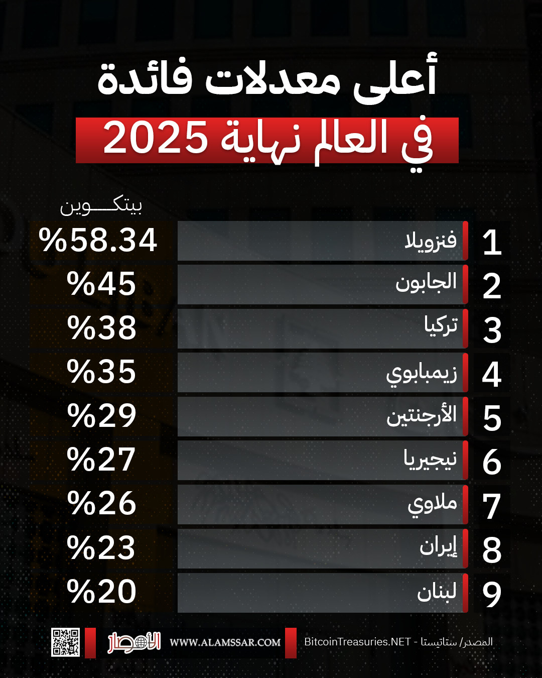 إنفوجراف.. أعلى معدلات فائدة في العالم نهاية 2025