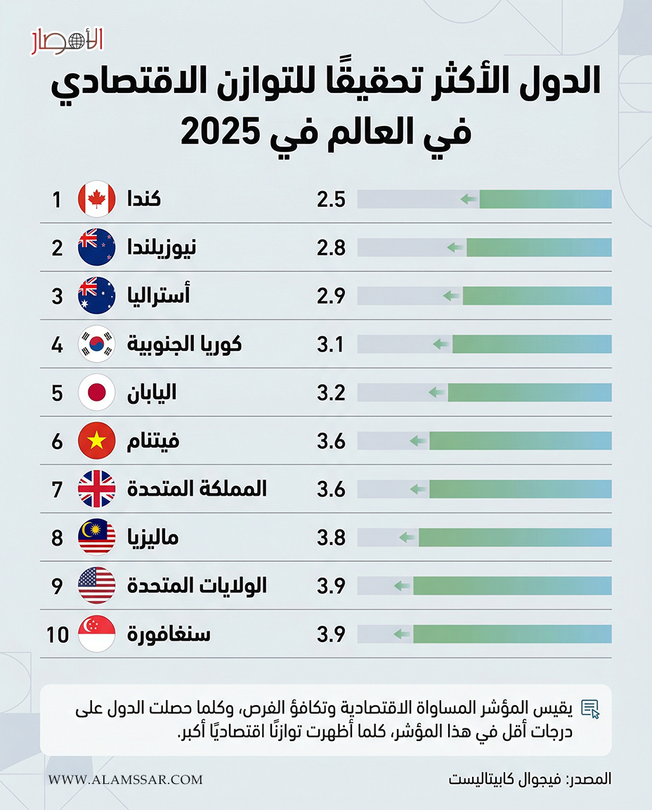 إنفوجراف.. الدول الأكثر تحقيقًا للتوازن الاقتصادي في العالم 2025