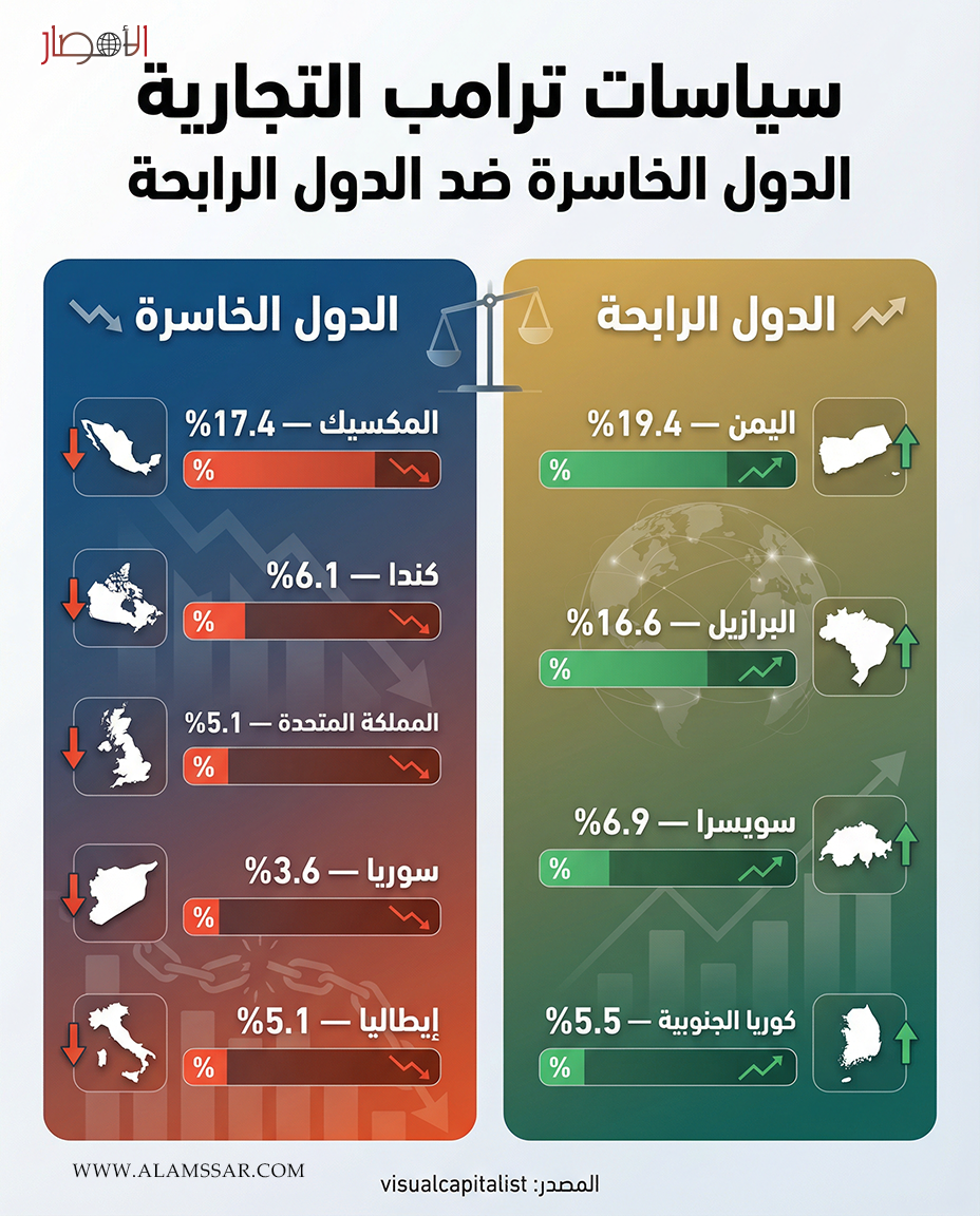 وأظهرت تحليلات حديثة نشرها موقع Visual Capitalist التأثير المباشر لهذه السياسات على مجموعة من الدول حول العالم، حيث تم تقسيمها إلى فئتين: "الدول الخاسرة" و"الدول الرابحة".