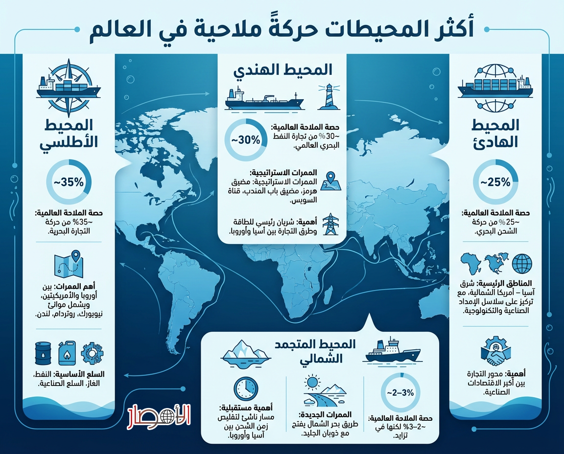بالإنفوجراف.. أكثر المحيطات حركةً ملاحية في العالم