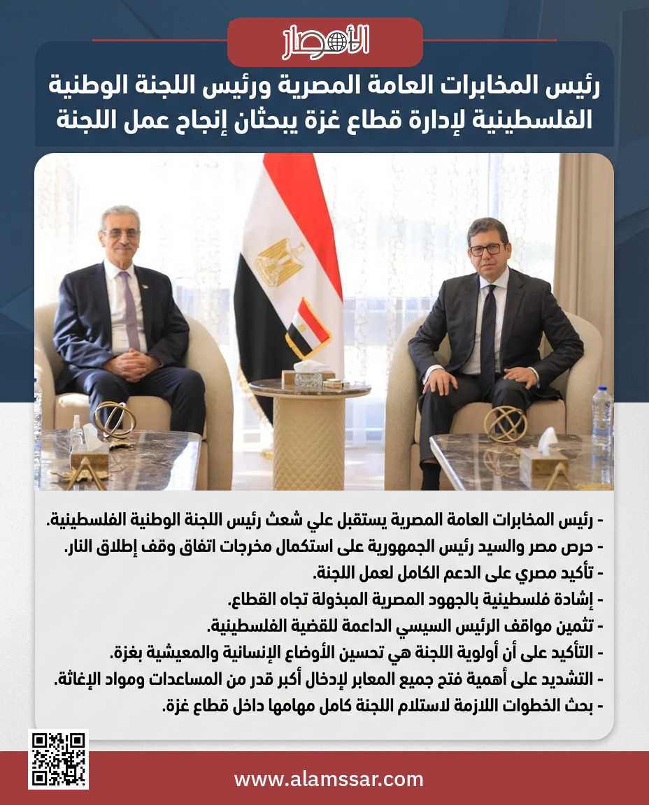 انفوجراف| تفاصيل لقاء رئيس المخابرات العامة المصرية ورئيس اللجنة الوطنية الفلسطينية لإدارة قطاع غزة