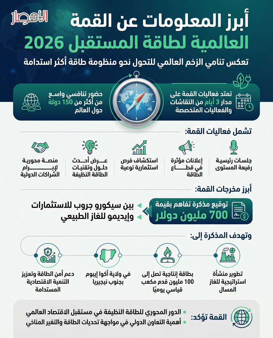 بالإنفوجراف.. أبرز المعلومات عن القمة العالمية لطاقة المستقبل 2026