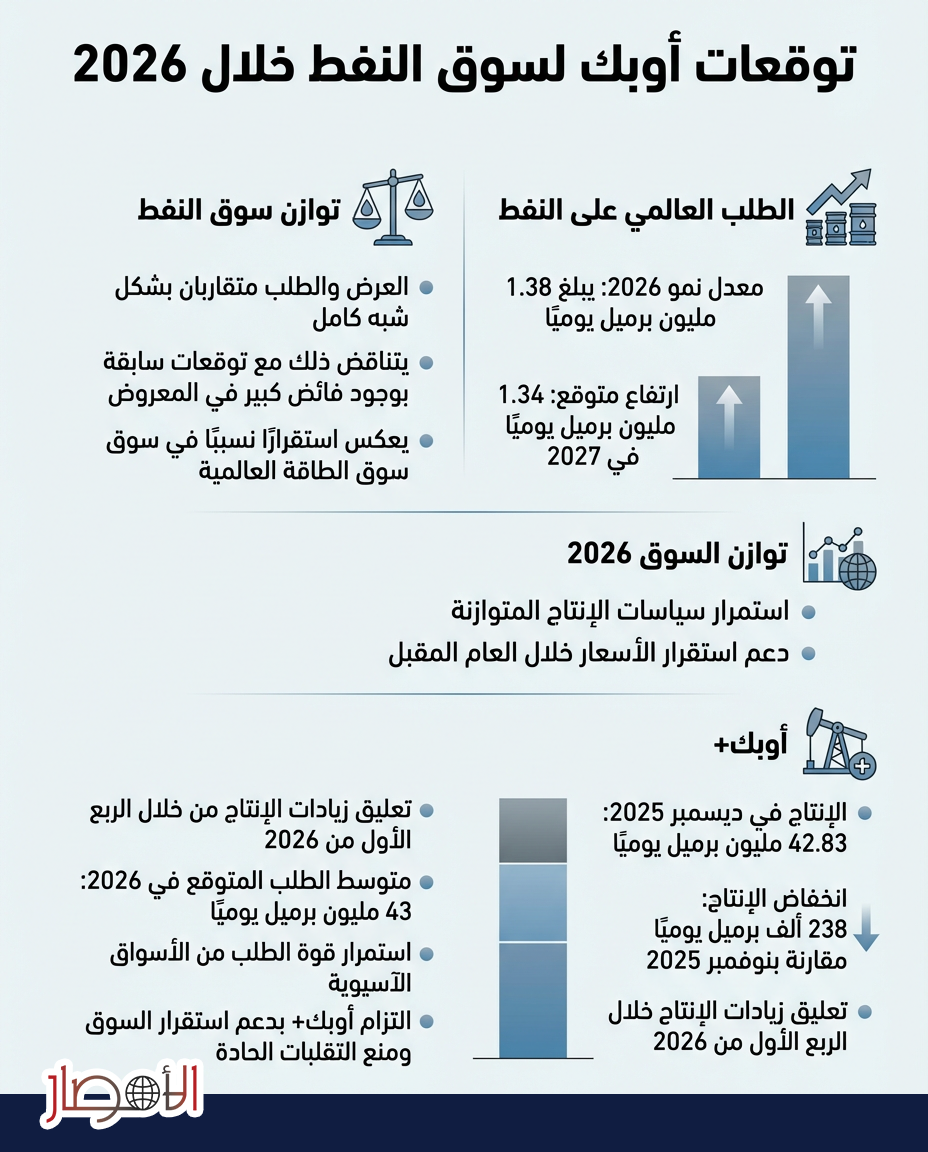 بالإنفوجراف.. توقعات أوبك لسوق النفط خلال 2026