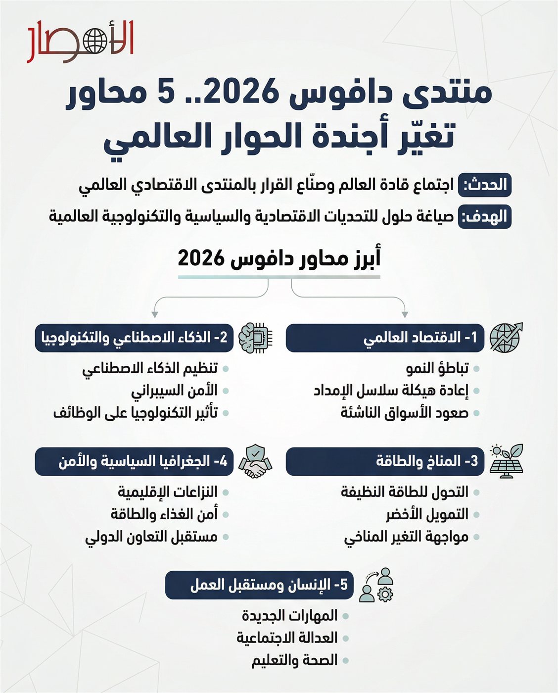 بالإنفوجراف| منتدى دافوس 2026.. 5 محاور تغيّر أجندة الحوار العالمي