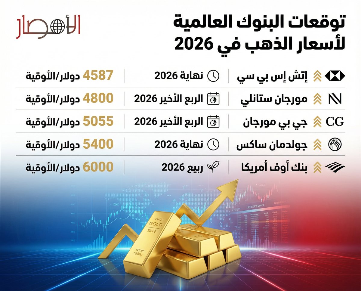إنفوجراف| توقعات البنوك العالمية لأسعار الذهب في 2026