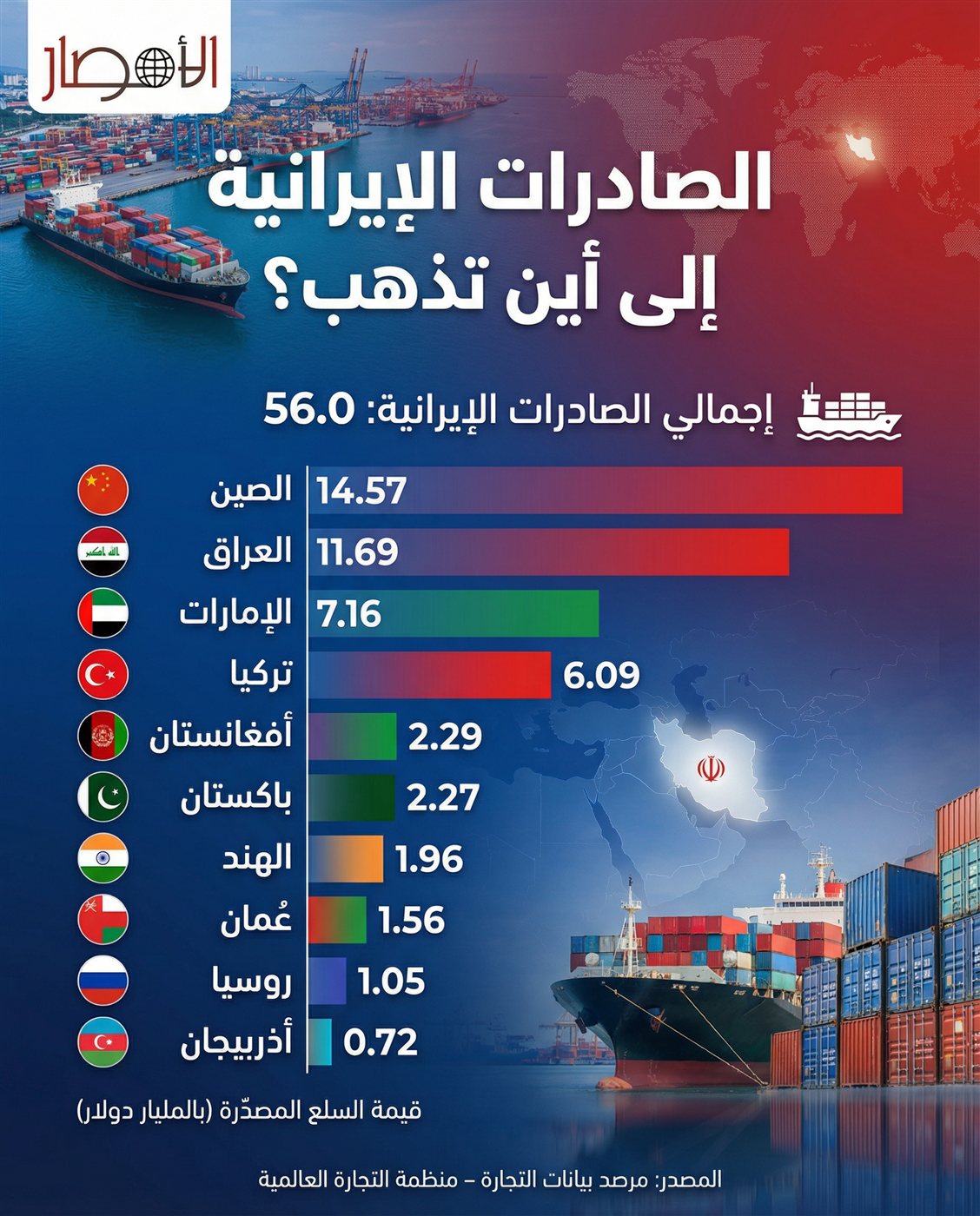 إنفوجراف| بالأرقام.. الصادرات الإيرانية إلى أين تذهب؟