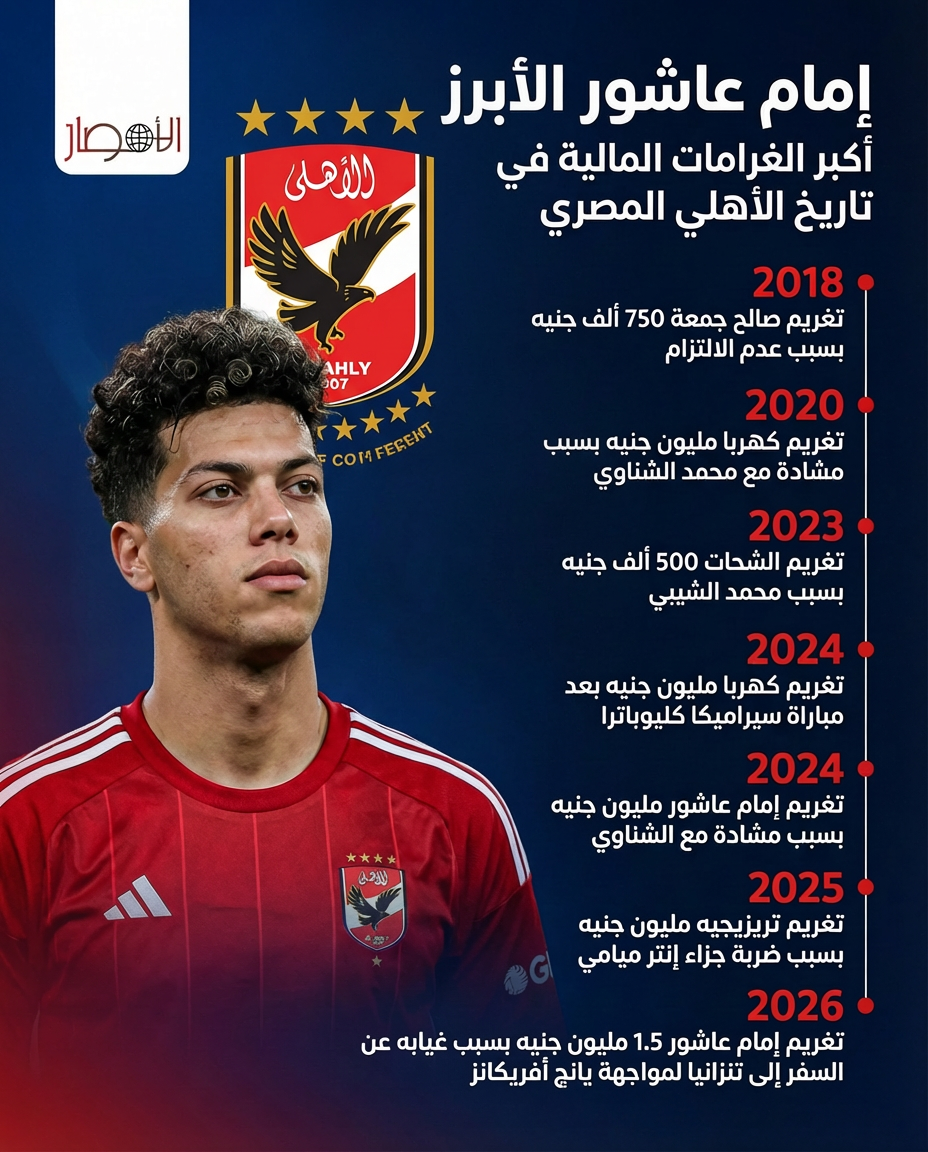 ومع تصاعد قيمة العقوبات خلال السنوات الأخيرة، برز اسم اللاعب الدولي المصري إمام عاشور بوصفه صاحب أكبر غرامة مالية في تاريخ القلعة الحمراء.
