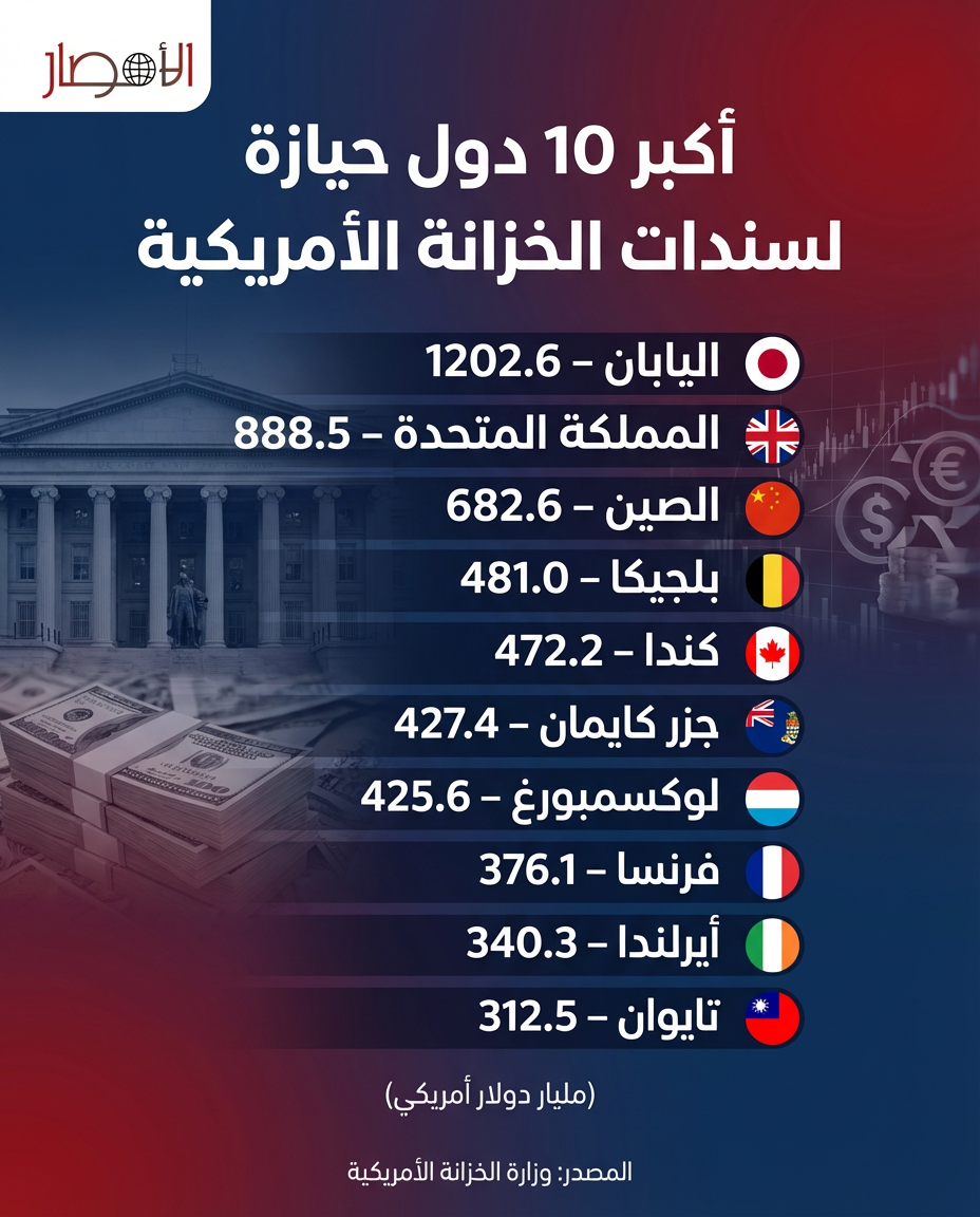 انفوجراف| بالأرقام.. أكبر 10 دول حيازة لسندات الخزانة الأمريكية