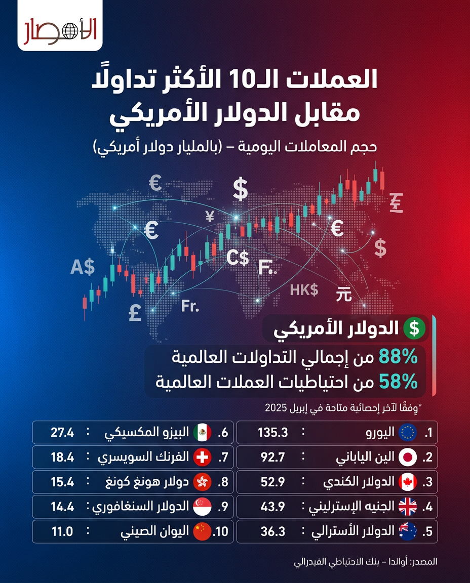 إنفوجراف| بالأرقام.. العملات الـ10 الأكثر تداولًا مقابل الدولار الأمريكي