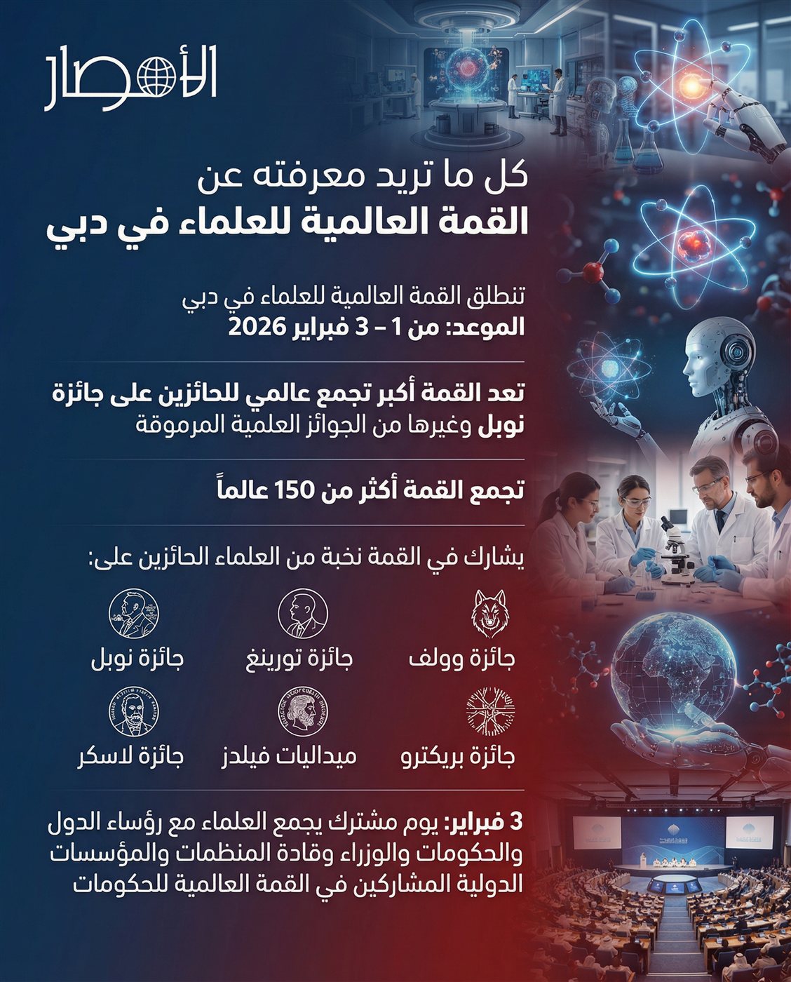 إنفوجراف| كل ما تريد معرفته عن القمة العالمية للعلماء في دبي