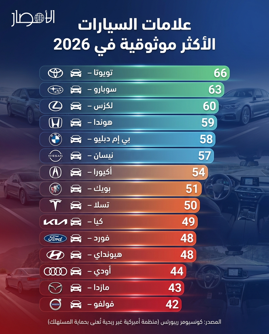بالإنفوجراف.. علامات السيارات الأكثر موثوقية في 2026