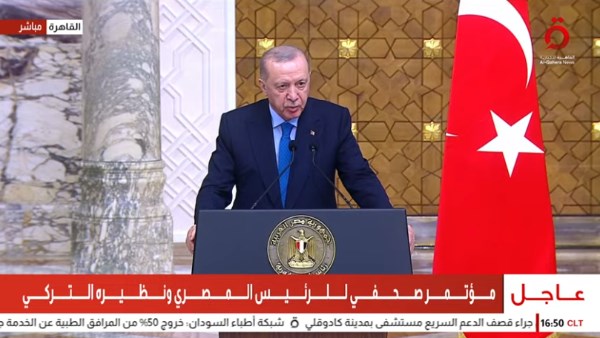 وأوضح الرئيس التركي خلال مؤتمر صحفي مشترك مع الرئيس عبد الفتاح السيسي أن هناك تعاونًا مصريًا تركيًا مشتركًا يهدف إلى تعزيز الأمن والاستقرار في المنطقة، في ظل التحديات الإقليمية والدولية الراهنة، مؤكدًا أن التنسيق بين البلدين يمثل ركيزة أساسية لتحقيق التوازن والاستقرار الإقليمي.