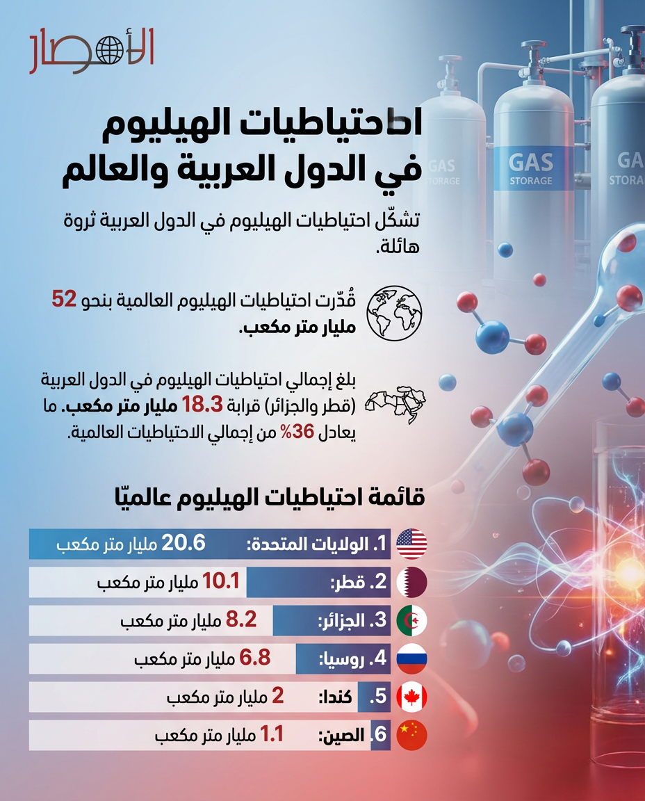 إنفوجراف| احتياطيات الهيليوم في الدول العربية والعالم