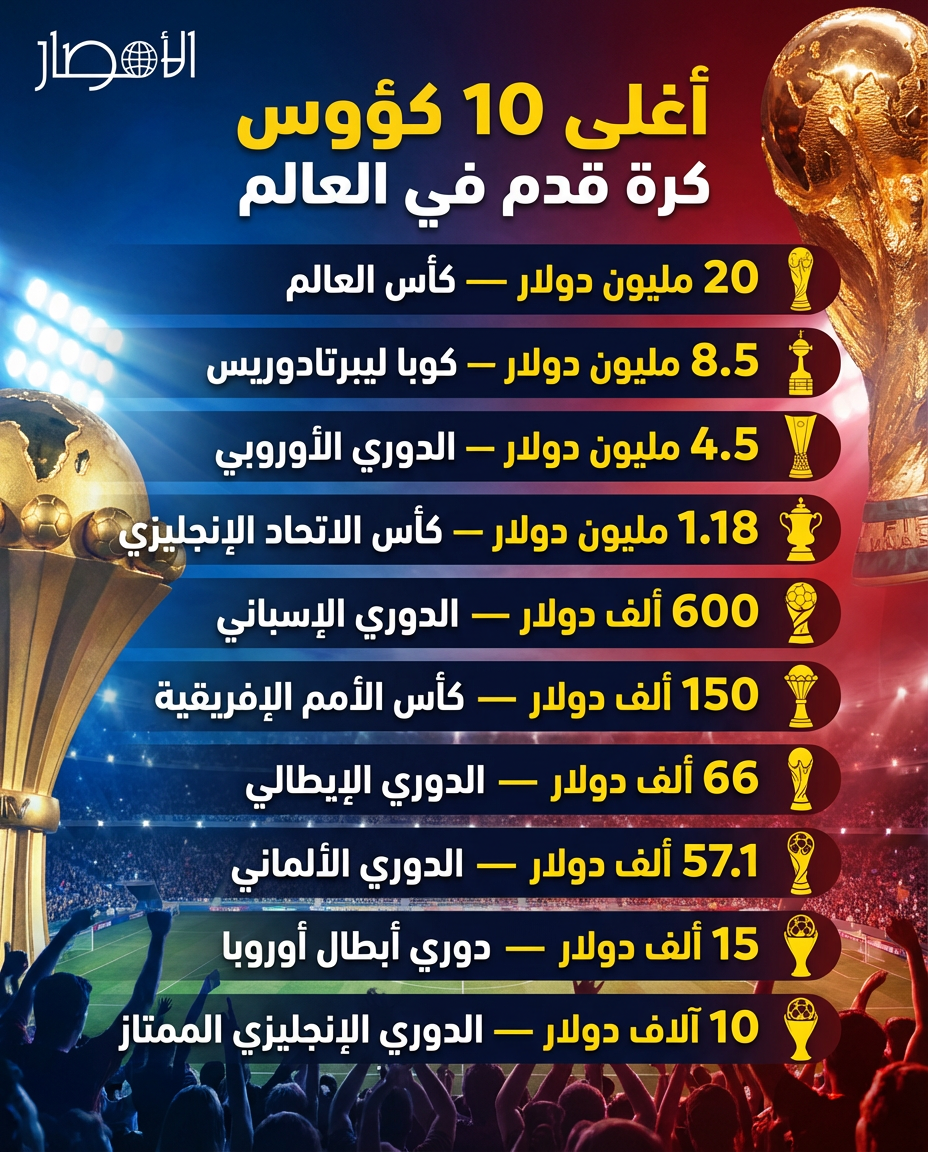 بالإنفوجراف.. أغلى 10 كؤوس كرة قدم في العالم
