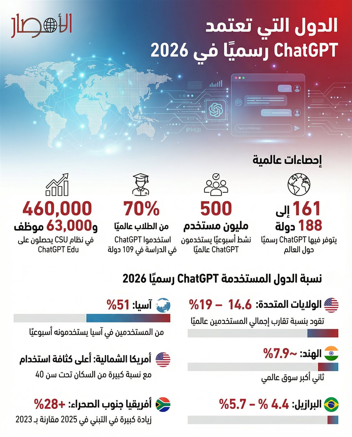 انفوجراف.. الدول التي تعتمد ChatGPT رسميًا في 2026