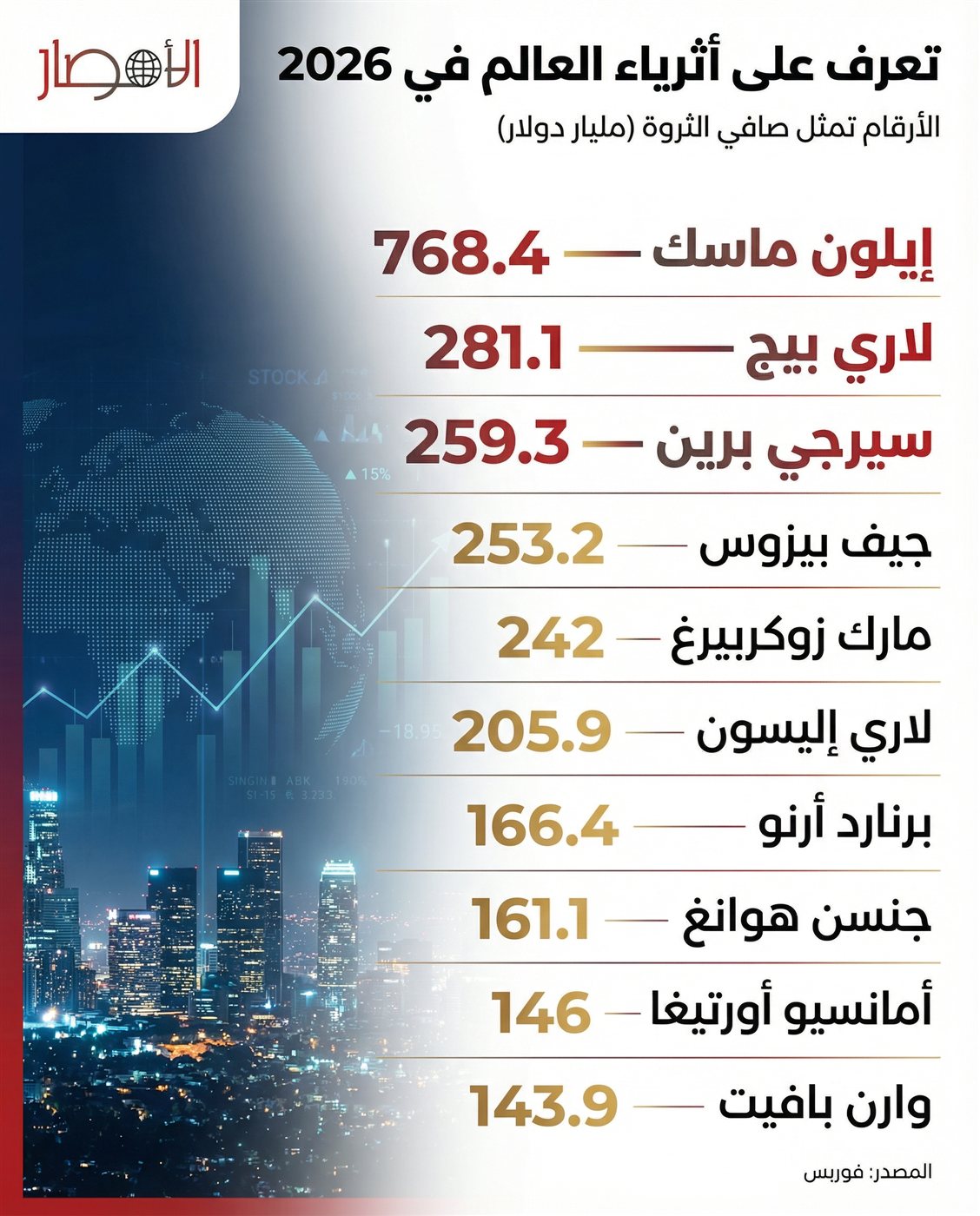 بالإنفوجراف.. تعرف على أثرياء العالم في 2026