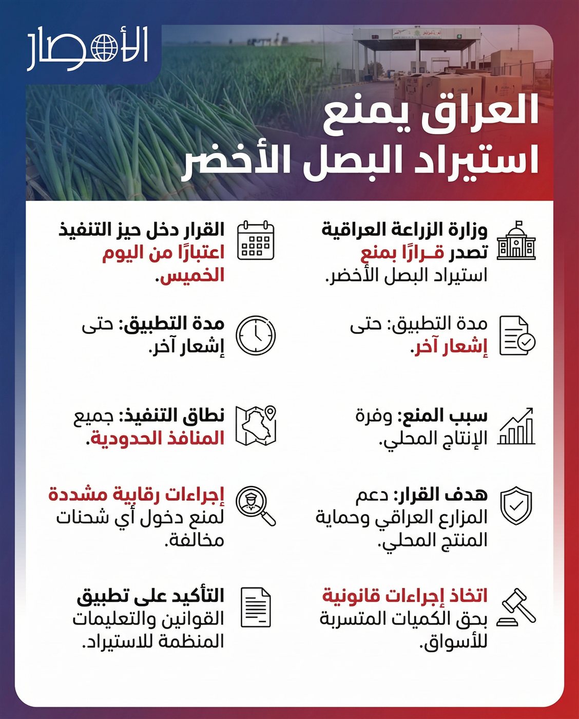 انفوجراف | العراق يمنع استيراد البصل الأخضر