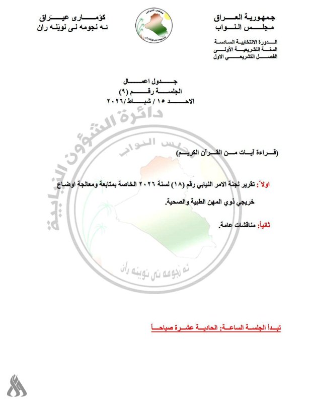 مجلس نواب العراق ينشر جدول أعماله ليوم غد الأحد