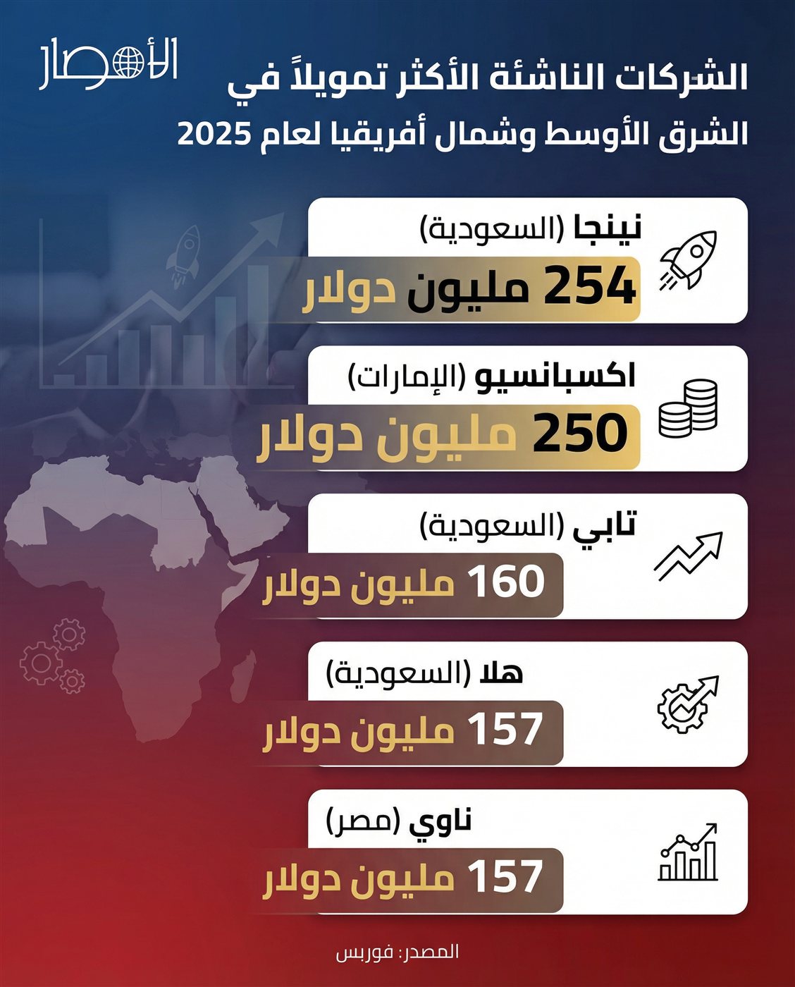 انفوجراف.. الشركات الناشئة الأكثر تمويلاً في الشرق الأوسط وشمال أفريقيا لعام 2025