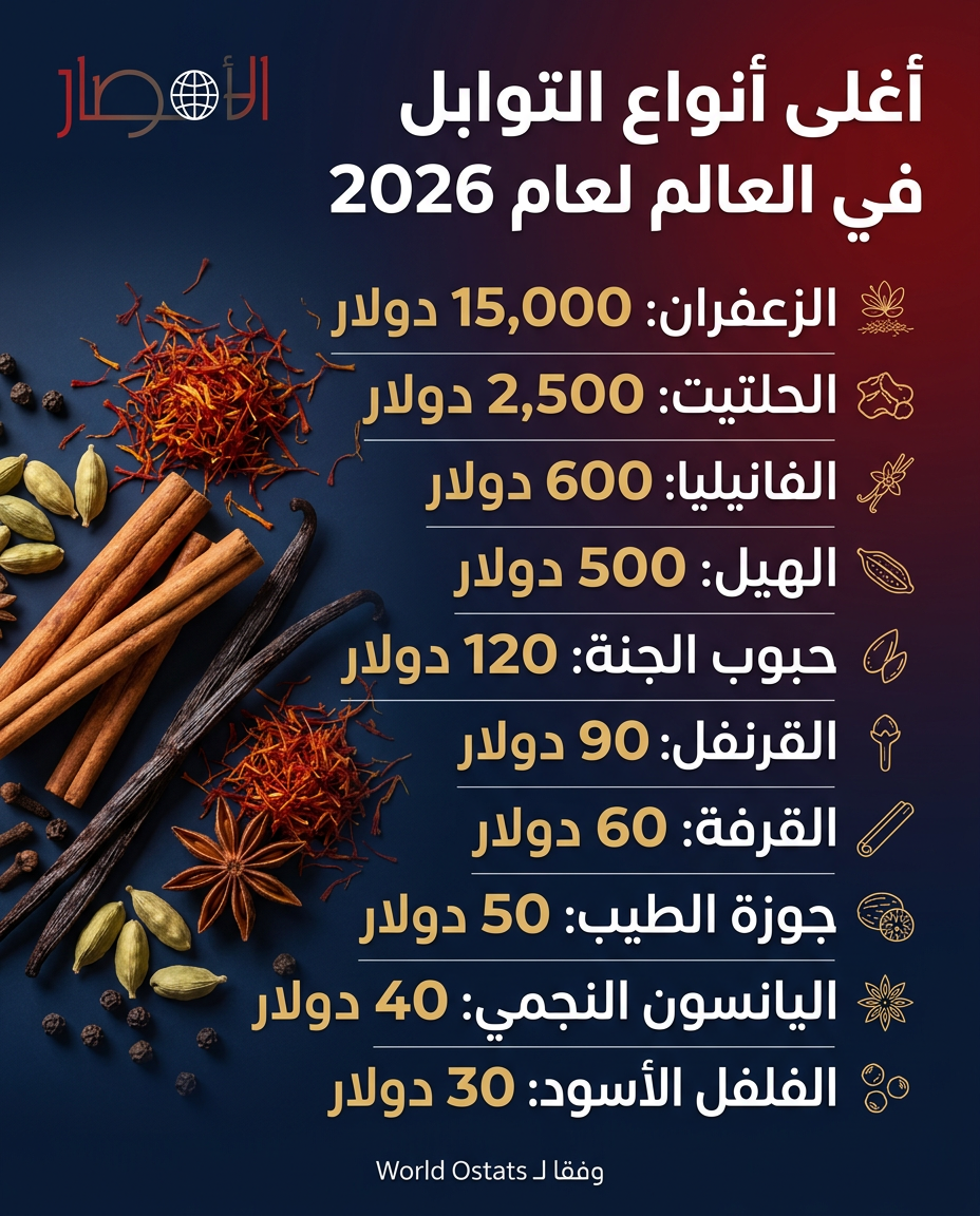 إنفوجراف| أغلى أنواع التوابل في العالم لعام 2026