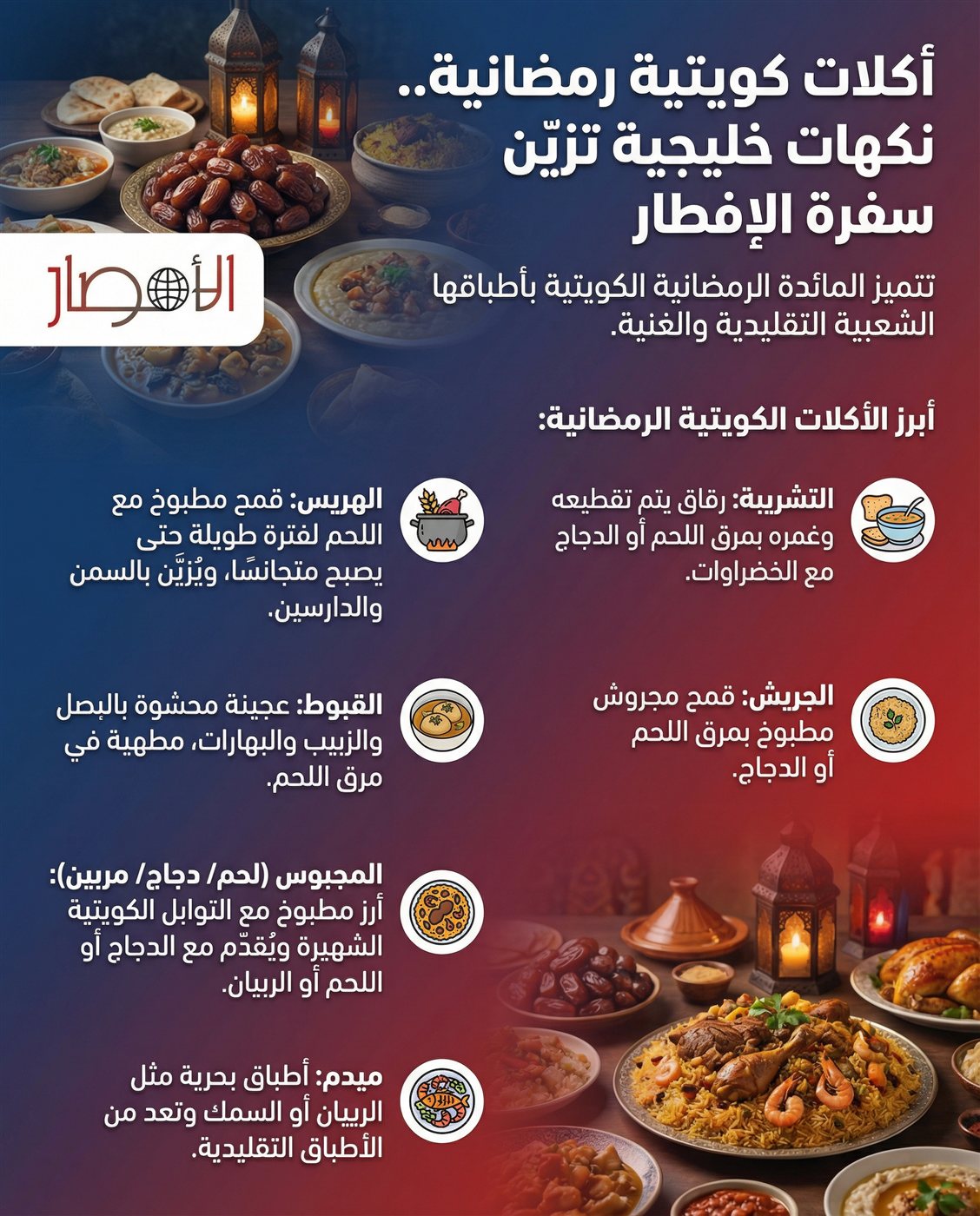 إنفوجراف| أكلات كويتية رمضانية.. نكهات خليجية تزيّن سفرة الإفطار