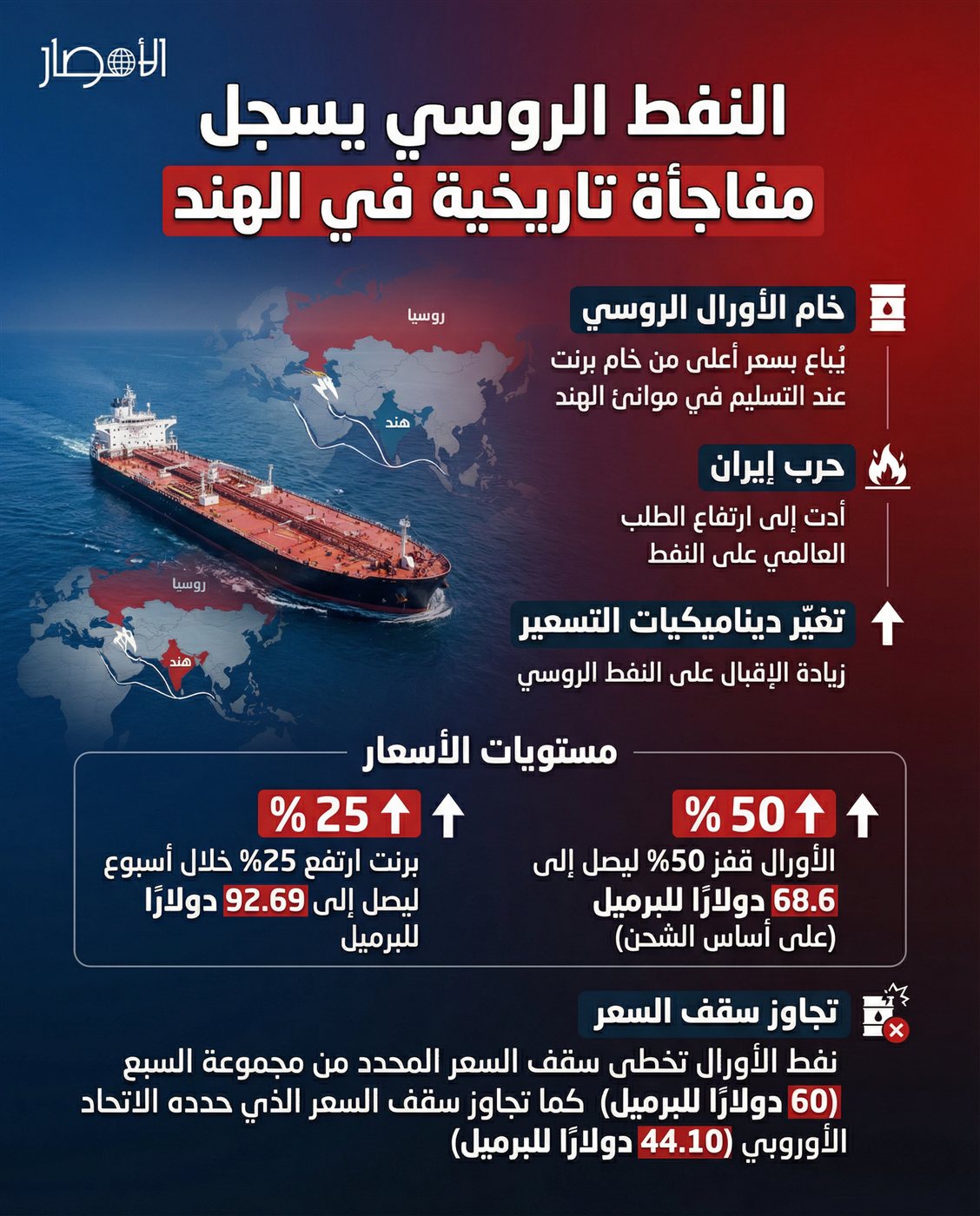 بالإنفوجراف| النفط الروسي يسجل مفاجأة تاريخية في الهند