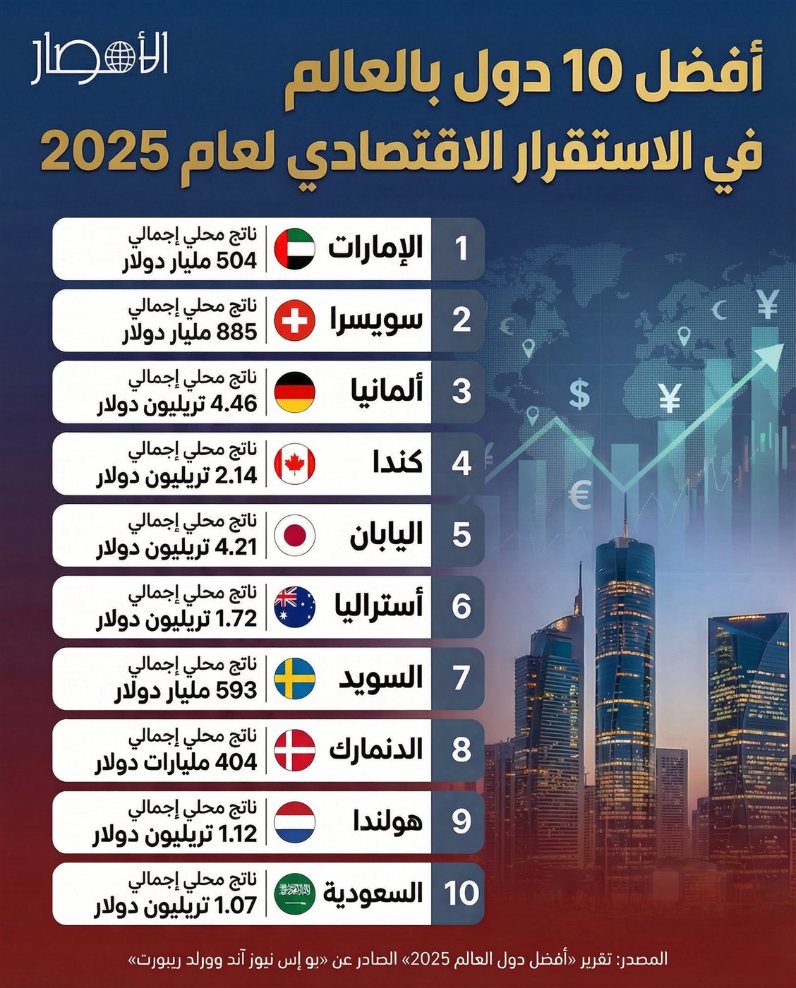 إنفوجراف| أفضل 10 دول بالعالم في الاستقرار الاقتصادي لعام 2025