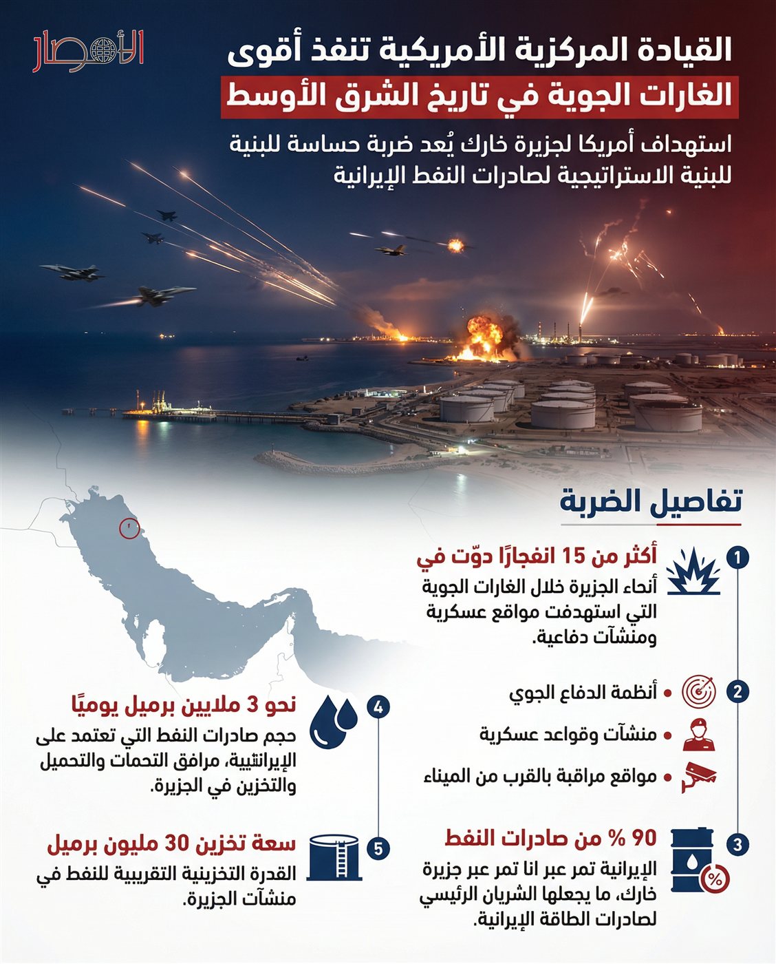 +استهداف أمريكا لجزيرة خارك يُعد ضربة حساسة للبنية الاستراتيجية لصادرات النفط الإيرانية