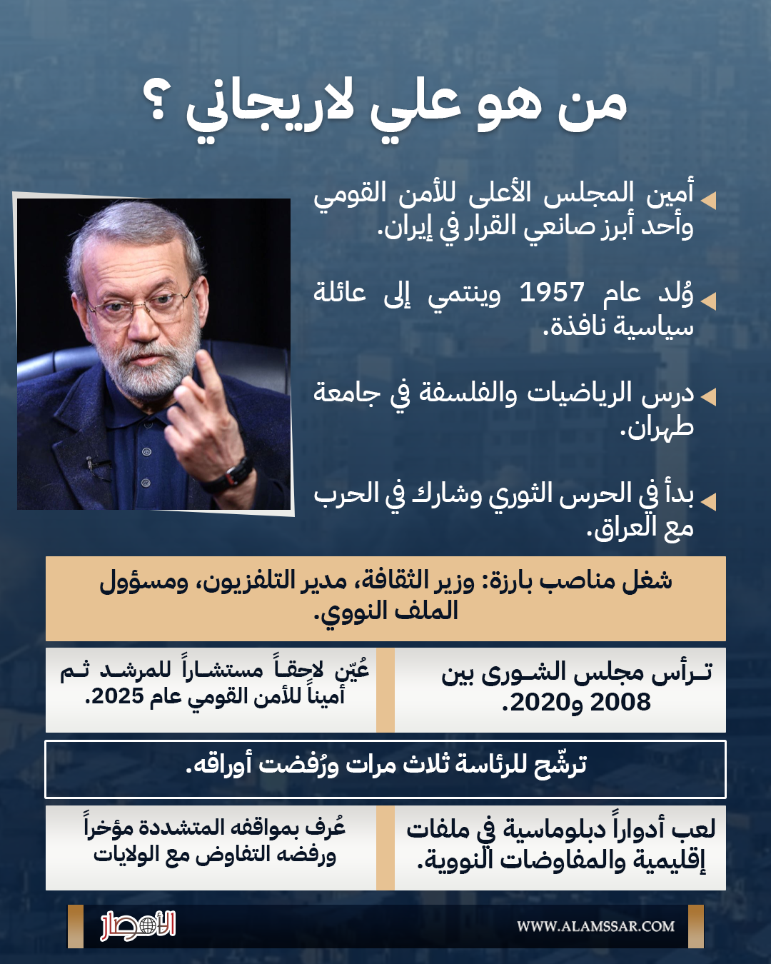 إنفوجراف| من هو علي لاريجاني؟