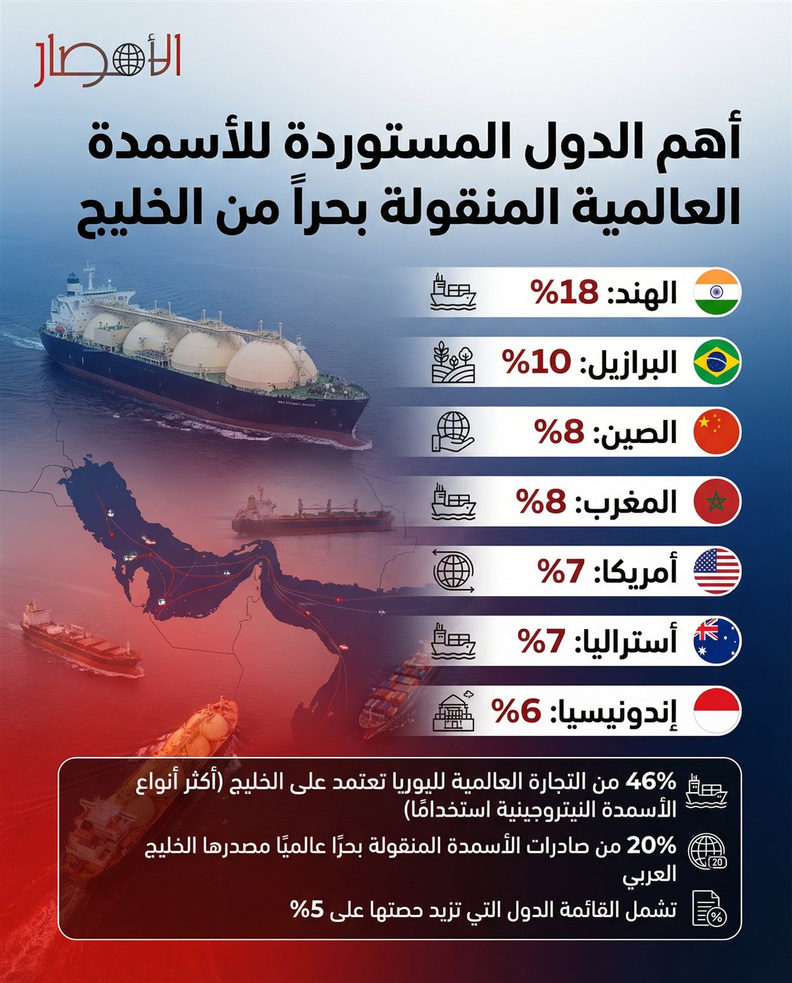انفوجراف.. أهم الدول المستوردة للأسمدة العالمية المنقولة بحراً من الخليج